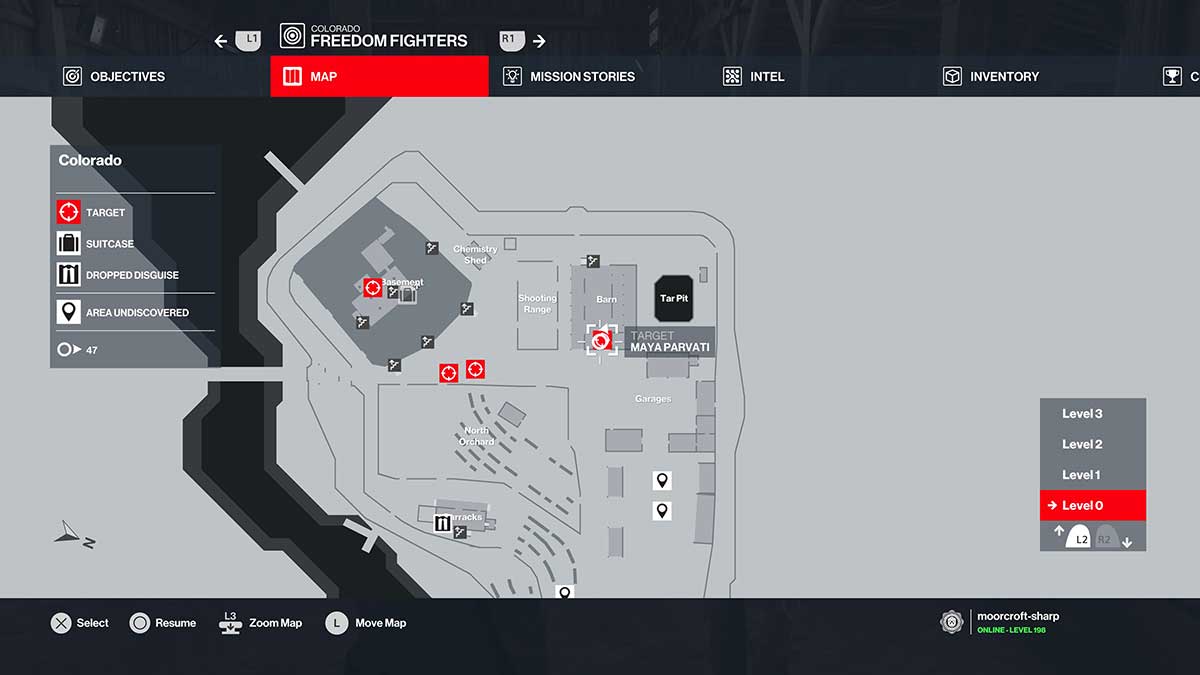Третья цель, которую нужно убить, — Пенелопа Грейвс. Она гуляет по ферме в окружении охранников. Подойдите к ней, где бы она ни была, и поговорите с ней, чтобы заставить ее переместиться в яму со смолой. Вам нужно бежать туда, чтобы встретиться с ней и поговорить с ней. Ниже приведена ссылка на карту для смоляной ямы.