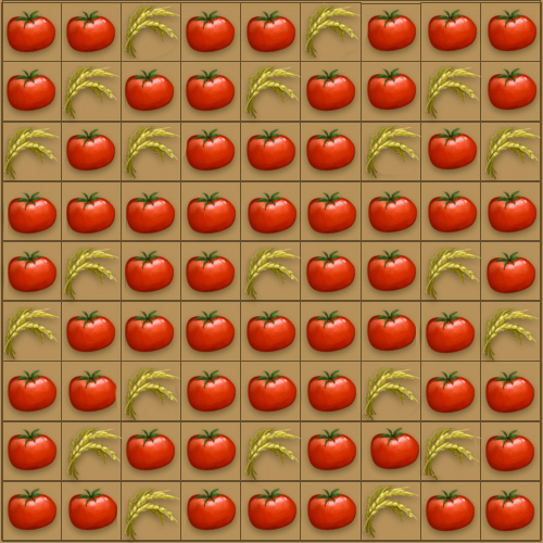 Схема садоводства в начале и середине игры: 60 помидоров