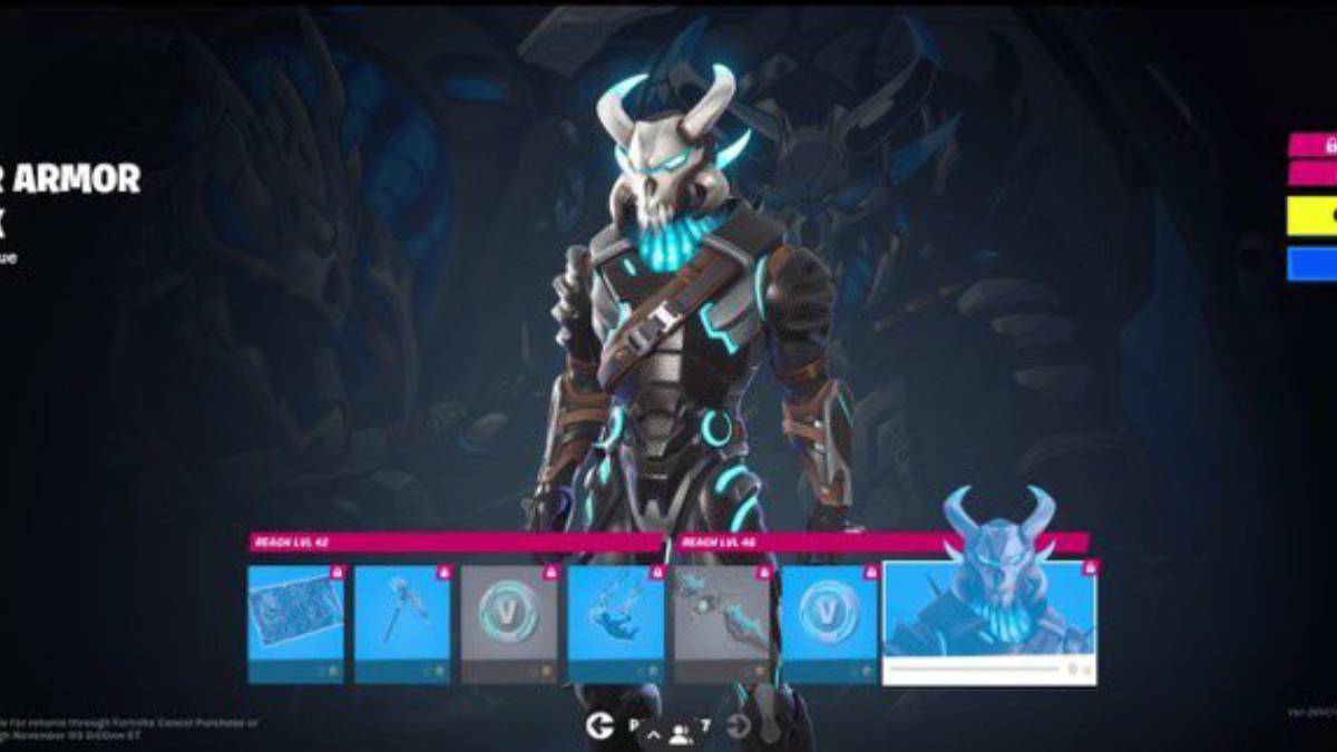 Уровень 44 – Броня «Предвестник» «Омегарок» Загрузочный экран Уровень 45 – Кирка «Зимний натиск» Уровень 46 – 100 В-баксов Уровень 47 – След Rage’n’Rock Уровень 48 – Планер «Ледяной ожог» Уровень 49 – 100 В-баксов Уровень 50 – Броня «Предвестник» Омегарок