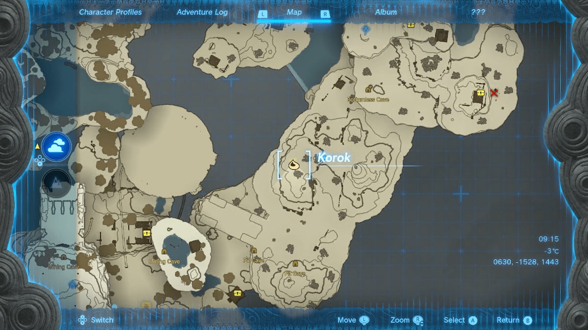 Семя Корок Местоположение 6 Это Семя Корок спрятано в более холодных регионах острова Великого Неба, недалеко от центра. Когда вы доберетесь до него, там будет куча камней, на которой вам нужно использовать Ультраруку и вписаться в большую каменную головоломку. Его завершение вызывает Корока.