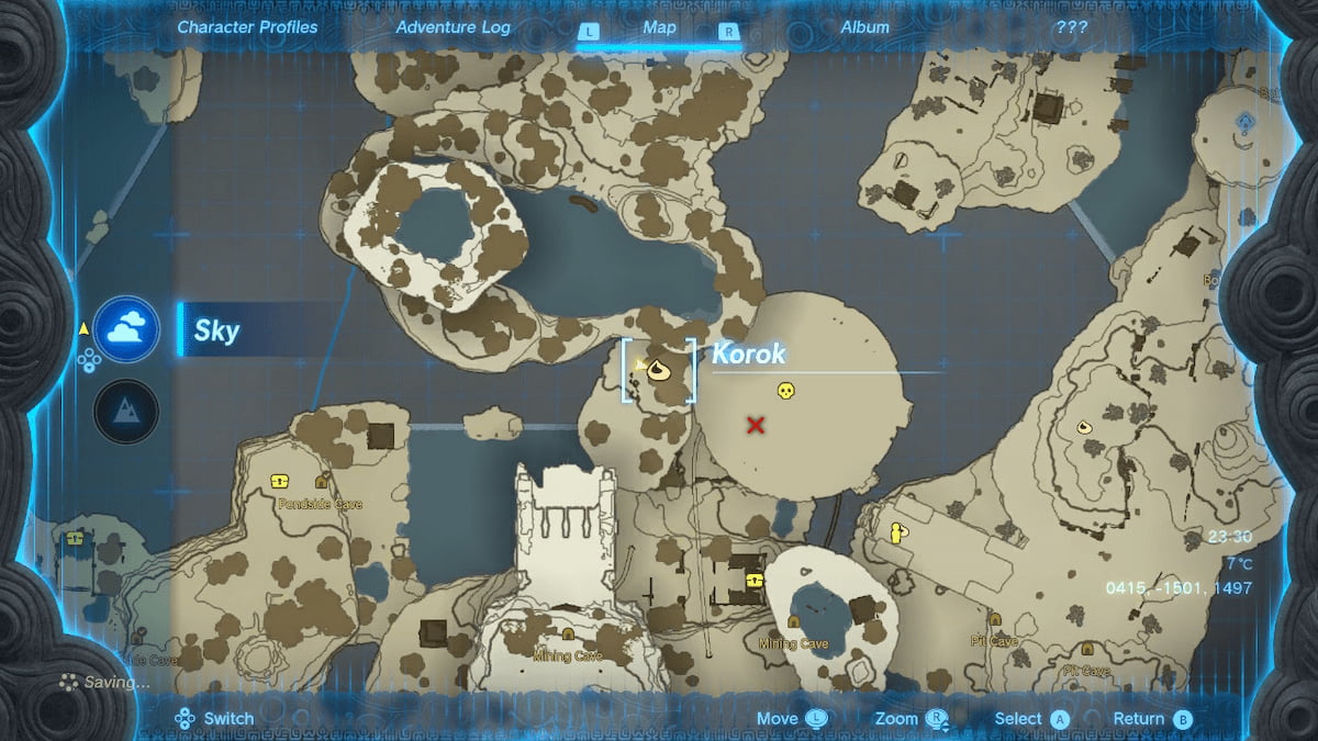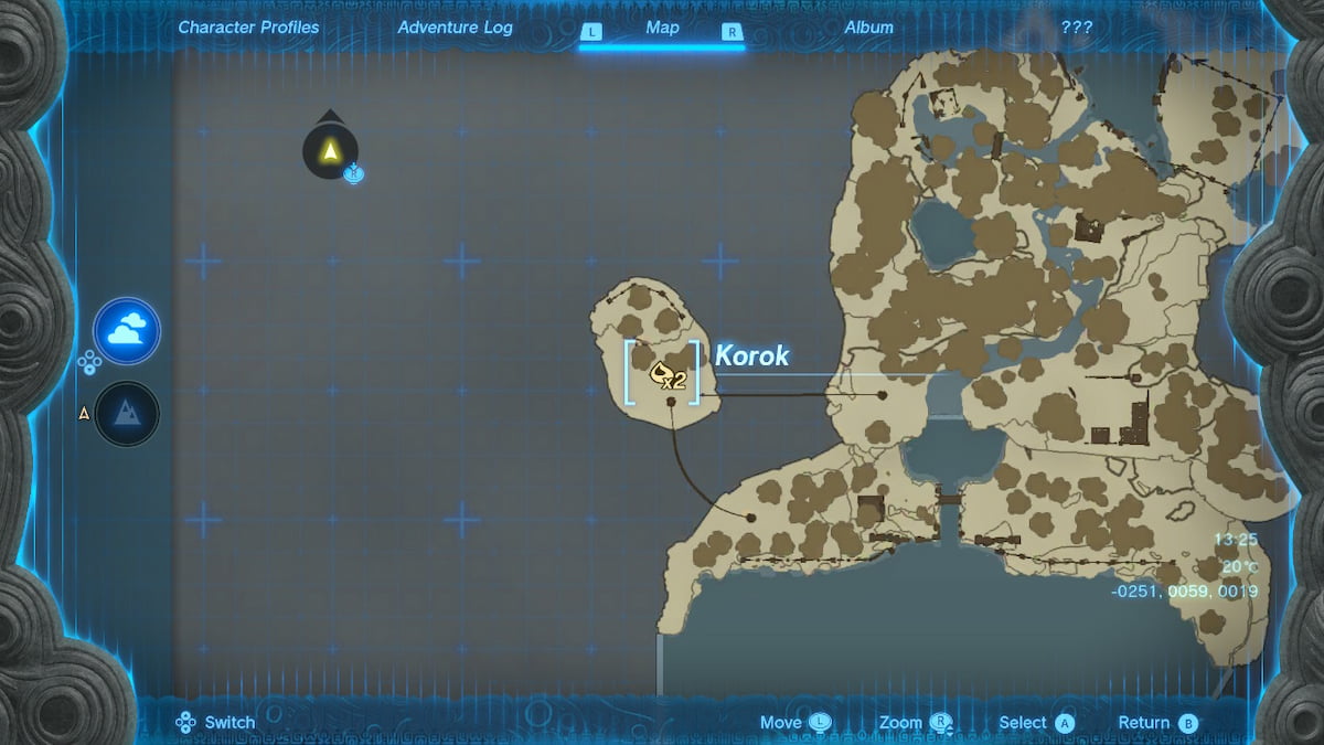 Местонахождение семени Корок 8 Для этого семени мы рекомендуем телепортироваться обратно в комнату пробуждения и выйти из этой пещеры. Когда вы достигнете внешней стороны и нырнете на остров Великого Неба, возьмите свой параплан и нацельтесь на остров, который мы отметили, и найдите дерево в центре с окружающими его скалами. Вам нужно будет поместить камень в отсутствующее место в образце, чтобы призвать Корока.