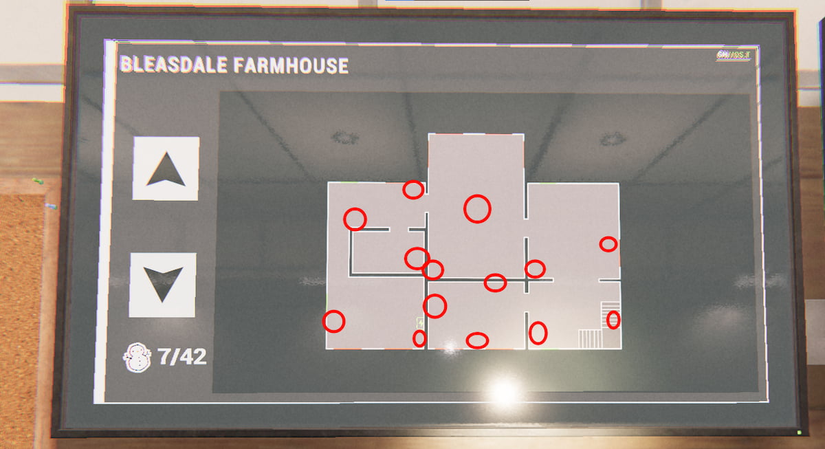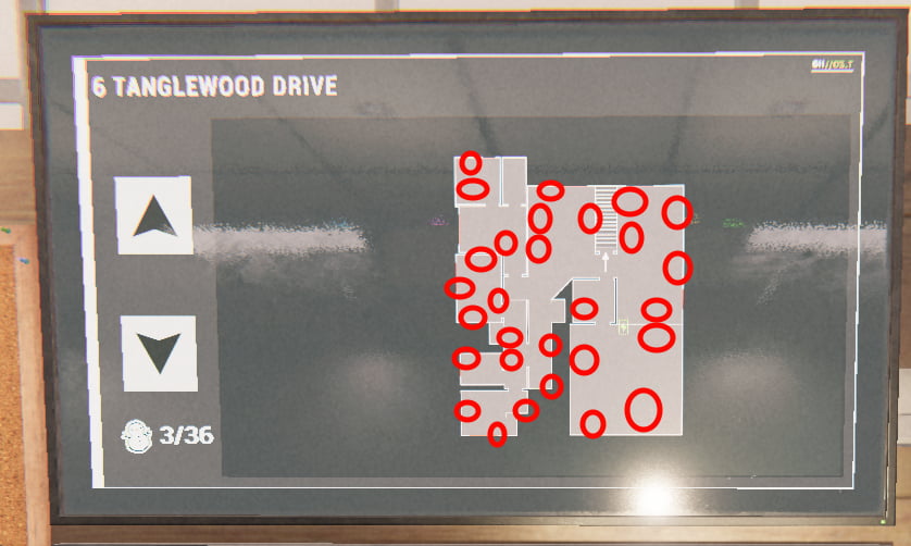 Перейдя к локации Тэнглвуд Драйв, 6, вы увидите еще больше танцующих снеговиков в Фазмофобии. Вам нужно только отследить его. В этом месте 36 снеговиков, троих вы найдете возле дома. Остальные находятся внутри, разделенные между первым этажом и подвалом.
