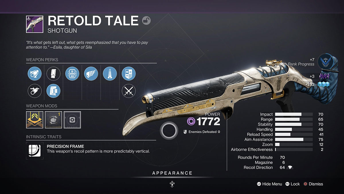 Продвинутые рефлексы: получив урон от врага, игроки могут быстро охранять или прицеливаться с помощью этого оружия, чтобы получить бонус к мобильности, скорости рывка и обращению на короткий период времени.