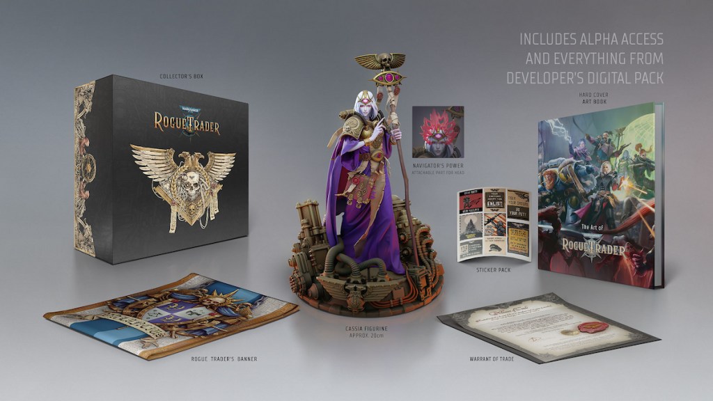 Существует пять различных изданий Warhammer 40K: Rogue Trader, каждое из которых содержит бонусы и дополнительный контент для игроков, включая коллекционное издание. На данный момент игра доступна только для предварительного заказа на ПК.