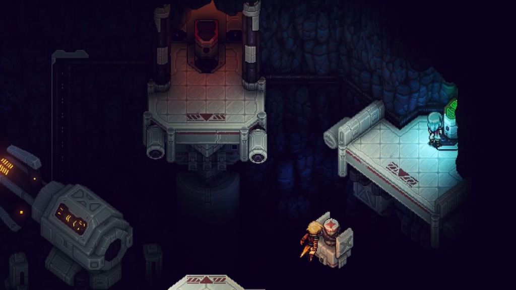 Sea of Stars может похвастаться огромным, постоянно расширяющимся миром, полным мифических существ и великолепной пиксельной графикой. С каждым новым открытием вас поражает захватывающее сочетание знакомого и неизведанного. Однако есть один неожиданный поворот, который следует подчеркнуть: внезапный прыжок из измерений в научно-фантастический мир. Эта межпространственная морская экспедиция выбрасывает вас на берег Заброшенной фабрики, подземелья с очень ярким футуристическим видом. Окружающая среда, сундуки и враги выглядят по-другому, что делает подземелье сложным, полным головоломок.