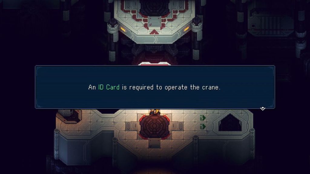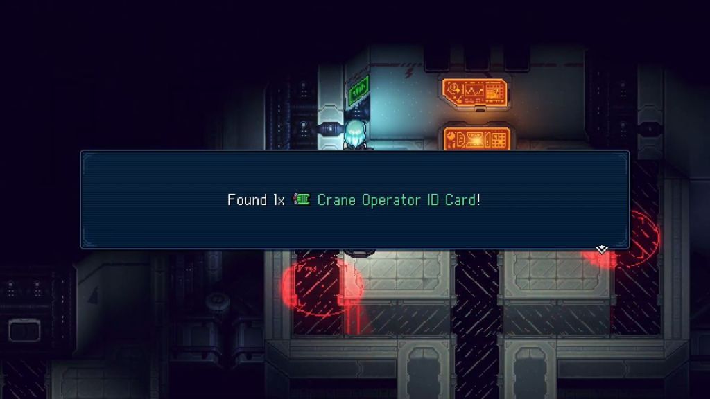 В следующей комнате взаимодействуйте с оранжевым экраном на северо-западе комнаты, чтобы найти удостоверение личности крановщика.