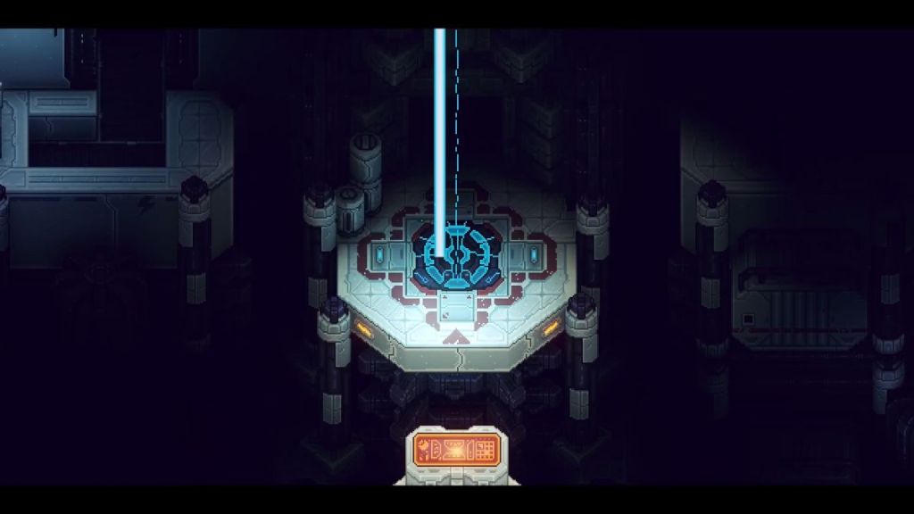 Вернитесь на платформу с лестницей и еще раз взаимодействуйте с оранжевым экраном, чтобы получить доступ к северной платформе.